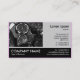 Eine Visitenkartenvorlage mit einer Schwarz-weißen Fußleiste mit einem oberen Bereich, der mit einem Foto und einem Textfenster maskiert ist. Foto oder Kunstwerk Bild auf dem verlassen (das auch durch Ihr eigenes Foto ersetzt werden kann) mit einem Panel für Namen und Details auf der rechten Seite. Platz für den Firmennamen am links Fuß mit Telefonnummer, Web und E-Mail-Kontaktdaten auf dem verlassen. Kann auch für andere Zwecke angepasst werden. Hinweis: Der Foto-Bereich ist maskiert, wenn Sie das Bild ersetzen, müssen Sie möglicherweise die Größe Ihres Fotos anpassen.