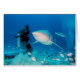 Stier-Haifisch, der Tauchen bei Playa del Carmen füttert. Die Zufuhren tragen einen chainmail Anzug für Schutz.
