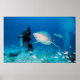 Bull Hai fütternd tauchen in Playa del Carmen. Die Anleger tragen zum Schutz einen Kettenhemd-Anzug.