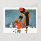 Eine Vintage Mutter und ein Kind füttre Vögel im Schnee