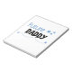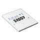 Future Daddy hält Sake-Kisten, Teller, Tasse, Notizbücher, Gel-Mousepads und andere zukünftige Papa-Geschenke mit blauem und schwarzem Text und Sternendesign.