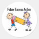 Ein Strichmännchen trägt einen riesigen gelben Stift und Text liest "Future Famous Author", ein niedliches Design auf T - Shirt, Tasse, Karten, Tottaschen und andere Gegenstände perfekt für die Person, die Lieben schreiben!