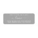 Chic, modern und einfach Brautadressen-Label mit dem Text der Zukunft Mr. und Mrs. und Ihrem Nachnamen in weißer eleganter handgeschriebener Schrift Kalligraphie auf grauem Hintergrund. Fügen Sie einfach Ihren Namen und Ihre Adresse hinzu. Exklusiv für Sie entworfen von Happy Dolphin Studio. Wenn Sie Hilfe oder passende Produkte benötigen, kontaktieren Sie uns bitte unter happydolphinstudio@outlook.com. Wir helfen Ihnen gerne, Ihre Hochzeit zum schönsten Tag zu machen!