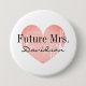 Future Mrs bride to be bridal shower heart button. Personalized name badges with cute pink love icon design. Vintage print for bachelorette party, bridal shower, girls night out and wedding party. Visit our store for more fun, classy and fancy designs for marriage. Make one for bride to be , brides maids, maid of honor, flower girl, matron of honor, mother of the bride etc.