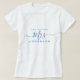 Zukünftige Frau moderne individuelle Name T - Shirt mit dem Text Frau in blau elegante Drehkalligraphie. Fügen Sie einfach den verheirateten Namen der Braut hinzu und Sie haben das perfekte Brautparty Geschenk. Exklusiv für Sie entworfen von Happy Dolphin Studio.