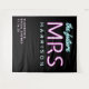 Coole moderne "The Future Mrs." personalisierte schwarze Foto-Messeaufnahmen für Ihr Brautparty, mit "the future" und "MRS." in aquamarin blauen und heißen rosa Schriften mit Neonlichteffekt. Sie können mit Ihrem zukünftigen verheirateten Namen, Vornamen und Duschdatum personalisieren. Die untere Ecke wird für einen Bereich, in dem Sie Fotos mitnehmen können, leer verlassen.