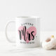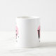 Personalisierte Kaffee-Tasse für die Zukunft Frau verfügt über ein modernes, schwarzes Drehbuch mit eigenem Nachnamen und einem hübsch rosa Hintergrundbild.