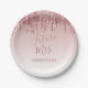 Future Mrs - Bride Imitats Sparkle und Glitzer Rose Gold Blush Pink Papier Teller, die perfekt für eine Rose Gold oder Blush Pink Junggeselinnen-Abschied. Diese Future Mrs Paper Plate ist perfekt für einen Junggeselinnen-Abschied. Der Name der Braut kann auf dieser Platte aktualisiert werden.