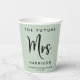 Einfache moderne "The Future Mrs." maßgeschneiderte Weise Grünpapier Tassen für Ihr Brautparty. "Mrs." ist in einem großen, eleganten Drehbuch geschrieben, und Sie können mit Ihrem zukünftigen verheirateten Namen, Vornamen und Duschdatum personalisieren.