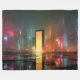 Futuristic Cityscape with Neon Reflections Fleecedecke
