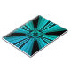 Vibrant electric abstract artwork from the Kaliverse Collection. This design features glowing blue and teal energy forms arranged in a striking symmetrical structure that radiates from the center like beams of light.