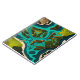 A vibrant aerial illustration of lush green islands and winding waterways, blending teal and emerald tones in a bold, futuristic style. This top-down view captures the intricate network of land and water, showcasing the unique beauty and architecture of floating landscapes.