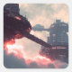 Futuristic platforms in the clouds at twilight quadratischer aufkleber