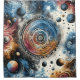Dieses faszinierende Kunstwerk verbindet die zeitlose Schönheit der Batik-Muster mit einem futuristischen kosmischen Thema. Das Design besticht durch seine kompakten kreisförmigen Motive, wirbelnden Nebel und himmlischen Elementen. Die farbenfrohe Farbpalette tiefer Blues, feuriger Rot und glänzender Gold bereichert die galaktische Ästhetik. Ideal für alle Liebhaber von Raum, Astrologie und abstrakter Science-Fiction-Kunst, ideal für Bekleidung, Wohngestaltung und Accessoires.