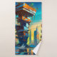Futuristische Dystopische Stadt, AI-Generierte Mal Badhandtuch Set