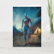 Ein humanoider Roboter steht auf einem Weg unter einem Sternenhimmel, umgeben von üppigen Bäumen. Im Hintergrund ist eine kleine Pyramidenstruktur mit leuchtendem Eingang zu sehen.
