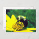 Ein bezauberndes Foto einer niedlichen, verschwommenen, kleinen Hummel auf einer hübschen gelben Blume. Ideal für alle, die Bienen, Tiere, Pflanze und die Natur bewundern.