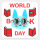 Fuzzy Cat World Book Day Quadratischer Aufkleber