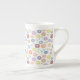 Fuzzy Flower Rpt Pattern Pastels on White Prozellantasse