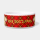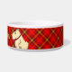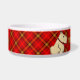 Zwei der niedlichsten kleinen schottischen Hunde Set vor einem karierten Hintergrund rot, schwarz und gold behaltend ein wachsames Auge auf das Futter oder die Wasserschüssel Ihres Hundes, um sicherzustellen, dass niemand außer (der Name Ihres Hundes) davon isst. Achten Sie also darauf, diese Schüssel mit dem Namen Ihres Haustieres anzupassen, bevor Sie sie in Ihren Warenkorb legen!