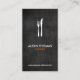 Ein handgezeichnet Logo einer Gabel & Messer macht ein modernes Visitenkartendesign für jeden Catering, Koch, Koch, Restaurant, Küche oder Café. Das schwarze Holz verleiht dieser Karte ein modernes rustikales Aussehen. 1201AM ist ein Boutique Grafikdesign Studio, das preisgekrönte Markenidentität und Design schafft. © 1201AM DESIGNS
