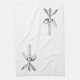 Ein knuspriges schwarz-weißes Küchentuch mit Gabel, Messer und Löffeldekoration.