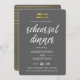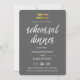 Eine klassische moderne Probenabendesseneinladung, die eine Imitatgoldfoliengabel kennzeichnen und Messer über einer Bürste script "das Probenabendessen", das alle in einem Grauen, Weiß- und Goldfarbentwurf grüßt.