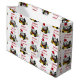 Eine niedliche Illustration eines gelben Gabelstaplers mit einer Weihnachtsmannmütze und in Weihnachtsbeleuchtung mit den Worten "Frohe Weihnachten" dekoriert. Der festliche Gabelstapler trägt Weihnachtsgeschenke und Geschenke. Ideal für Transportfahrer jeden Alters. Ein ideales Weihnachtskonzept für Gabelstaplerfans, ob groß oder klein, Mädchen oder Jungen.