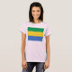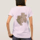 An der Vorderseite dieses T - Shirt wird die gabunische Fahne mit ihren markanten horizontalen Bändern in Grün, Gelb und Blau bewundert. Hinter dem Bild befindet sich eine attraktive Karte Gabuns.