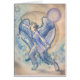Gabriel, mit dem kurzen dunklen Haar und den großen blauen Flügeln, hält eine Klinge in einer kämpfenden Position, tragende moderne Stadtkleidung, die Schneeflocken, die unten um sie in einer städtischen Winterszene, mit einer großen Stadt im Abstand treiben. Der große Mond ist hinter ihr. Swils des blauen und warmen Graus beherrschen die Malerei. Aquarell und Tinte sperren Malerei auf heißem Presse-Aquarellpapier, von meiner Erzengel-Reihe ein, die Gabriel, St Michael, RAPHAEL und Uriel umfaßt.