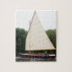 Traditionelles offenes Gaffel manipulierte Segelboot auf den Norfolk Broads, die nach dem Wind ein Schleppboot erhielten.