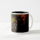 Gähnender und einschüchternder Mund von einem Zweifarbige Tasse