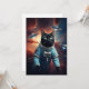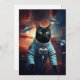 Ein faszinierendes Bild einer schwarzen Katze, die als Astronaut gekleidet ist und selbstbewusst in den Kosmos blickt. Umgeben von fliegenden Untertassen und einem lebendigen Nebel verkörpert die Katze ein Gefühl von Abenteuer und Mysterium.