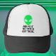 Mit diesem faszinierenden LKW-Hut mit einem auffallenden grünen Alien-Kopf lassen Sie sich von extraterrestrialer Neugier verzaubern. Mit dem Satz "Frag mich, ob die Wahrheit da draußen ist" mutig umarmt, entzündet es Gespräche und lädt zur Erforschung der Geheimnisse des Universums ein. Dieser Hut ist perfekt für Gläubige und Skeptiker gleichermaßen geeignet und verbindet Stil mit einem Gefühl des Staunens, was ihn zu einem unverzichtbaren Accessoire für UFO-Fans und Sci-Fi-Fans macht. Erhöhen Sie Ihren Kleiderschrank mit einem Hauch kosmischer Intrigen und schließen Sie sich der Suche nach Antworten mit jedem Verschleiß an.