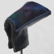 Eine Galaxie mit lila, grünen, blauen und schwarzen Sternen