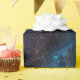 Packpapier mit einem Galaxieentwurf und Gruppen der wirbelnden Sterne. Groß für irgendeinen Raumfan oder -jemand, denen gerade Lieben das Anstarren in der Hauptrolle haben. Kommt mit einer schwarzen Grenze, die Sie mit einem Namen oder einer Mitteilung für diese spezielle Person besonders anfertigen können.