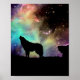 verschiedene Farben am Himmel mit einem Wolf, der heult