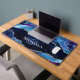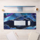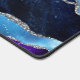 Diese galaxisch inspirierte Monogramm-Agate-Schreibtischmatte ist ideal für Spieler, mit einem Weltraum-Design in einem dunkelblauen und lila agate Marmorgeodmuster mit silbernen Glitzer-Venen.