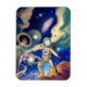 Benutzerdefinierter Magnet mit einer künstlerischen Abbildung eines Astronauten im Raum umgeben von Galaxien und Nebel.