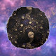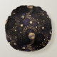 Dieses einzigartige runde Kissen zeichnet sich durch ein wunderschönes galaxisches Fraktal aus.