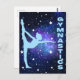 Galaxy Gymnastik Design mit weißen Sternen, milchig, hellpulverblau Silhouette Gymnastik und sagt Gymnastik in vertikaler Form.