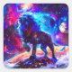 Ein majestätischer Löwe mit leuchtend blauer Mähne, stehend stolz vor einem Hintergrund der Galaxie, strahlend Power und kosmische Eleganz.
