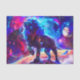 Ein majestätischer Löwe mit leuchtend blauer Mähne, stehend stolz vor einem Hintergrund der Galaxie, strahlend Power und kosmische Eleganz.