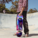 Ein majestätischer Löwe mit leuchtend blauer Mähne, stehend stolz vor einem Hintergrund der Galaxie, strahlend Power und kosmische Eleganz.