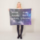 Fügen Sie diese schöne Akzent-Decke zu Ihrer Zuhause-Dekoration hinzu. In einem eleganten Drehbuch mit einer phantastischen Galaxie-Szene als Hintergrund erinnert uns Psalm 147:4, wer die Sterne in den Himmel steckte. "Er zählt die Anzahl der Sterne. Er nennt sie alle nach ihren Namen." Psalm 147:4 WEB