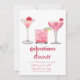 Wenn Sie einfach Stil Liebe, ist diese Einladung richtig für Sie. Die Einladung ist elegant, mit einem weichen, weißen Hintergrund und zarten Cocktails in der Mitte. In der Mitte sind die Details des Party wunderschön in einem rosa Schriftart gestaltet, der eine raffinierte Atmosphäre ausstrahlt. Mit dieser wunderschönen Vorlage laden wir Sie zu einem stilvollen Party ein. Hintergrundfarbe und Text können bearbeitet werden.
