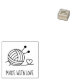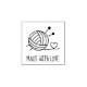 Eine Garnkugel mit Stricknadeln. Das lose Ende des Garns bildet ein Herz. Der Satz lautet: "Made with Liebe".