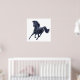 Originelles Kunstdesign eines galoppierenden schwarzen Pferdes von Carolyn McFann von Two Purring Cats Studio auf einem Plakat für Reitsportler.