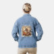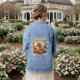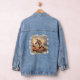 Denim Jacke mit galoppierendem Pferd bei Sonnenuntergang. Blumengrenze. Originelles Design. Eine weitere Jeans-Jacke mit einem denim-Pferd finden Sie unter https://www.zazzle.com/beautiful_white_horse_gold_floral_wreath_denim_jacket-256885727004929090