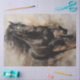 Ein Aquarellbild eines schwarzen Pferdes, das die majestätische Schönheit und Kraft dieses wunderschönen Tieres erobert.